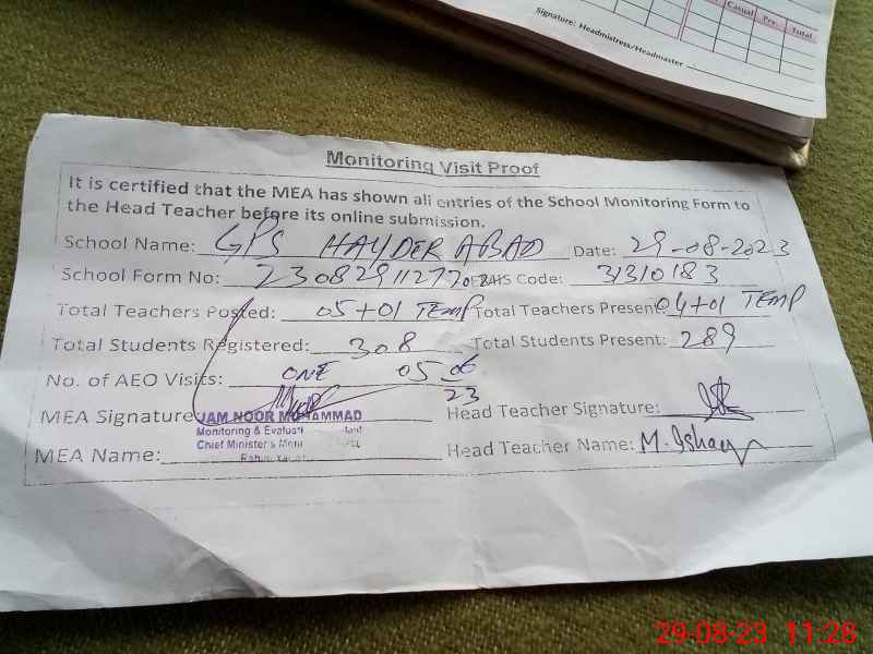 | Attendance Register | Head Teacher | MEA with School | Visit Proof |