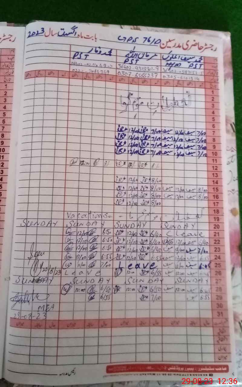| Name: Mu**** Sa**** UlMa**** Designation: (School Headmaster's/Headmistress's) PST Phone/Cell Number: 03**** |