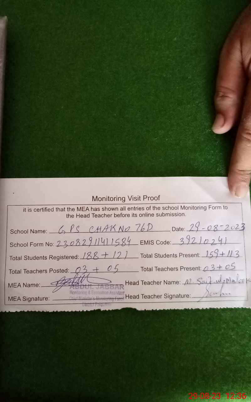 | EMIS Code: 39210241 | Name of School: GPS CHAK NO. 76/D | |||