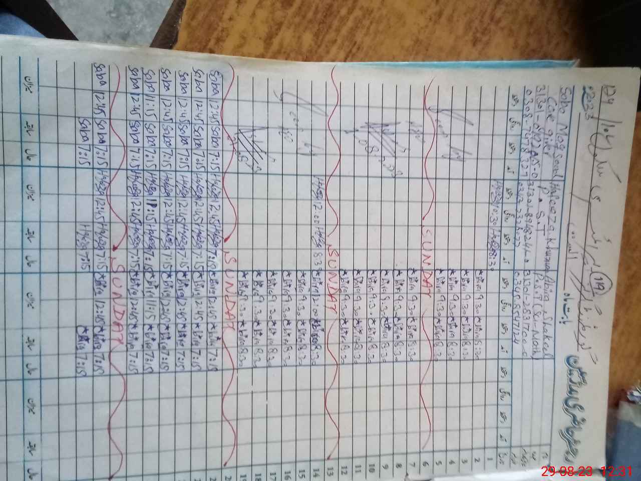 | CNIC | Full Name | Designation | R/C | Absence During Last Calender Month |
