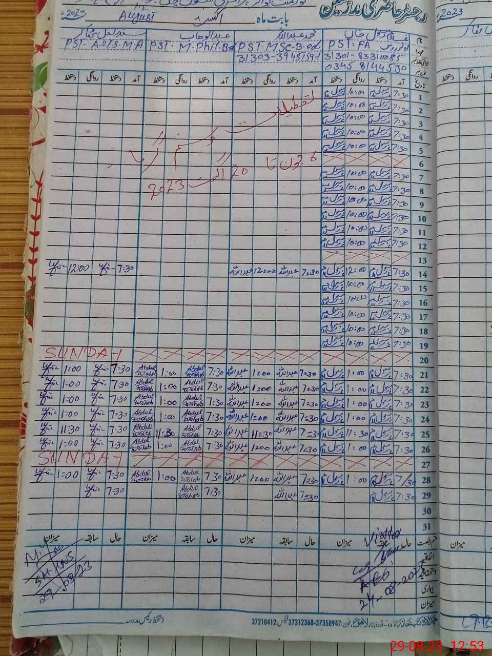 | Name: GH**** RA**** KH**** Designation: (School Headmaster's/Headmistress's) PST Phone/Cell Number: 03**** |