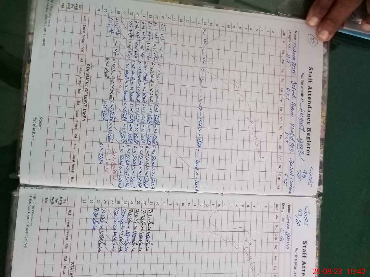 | Name: Ma**** Za**** Designation: (School Headmaster's/Headmistress's) ESE(Arts ) Phone/Cell Number: 03**** |