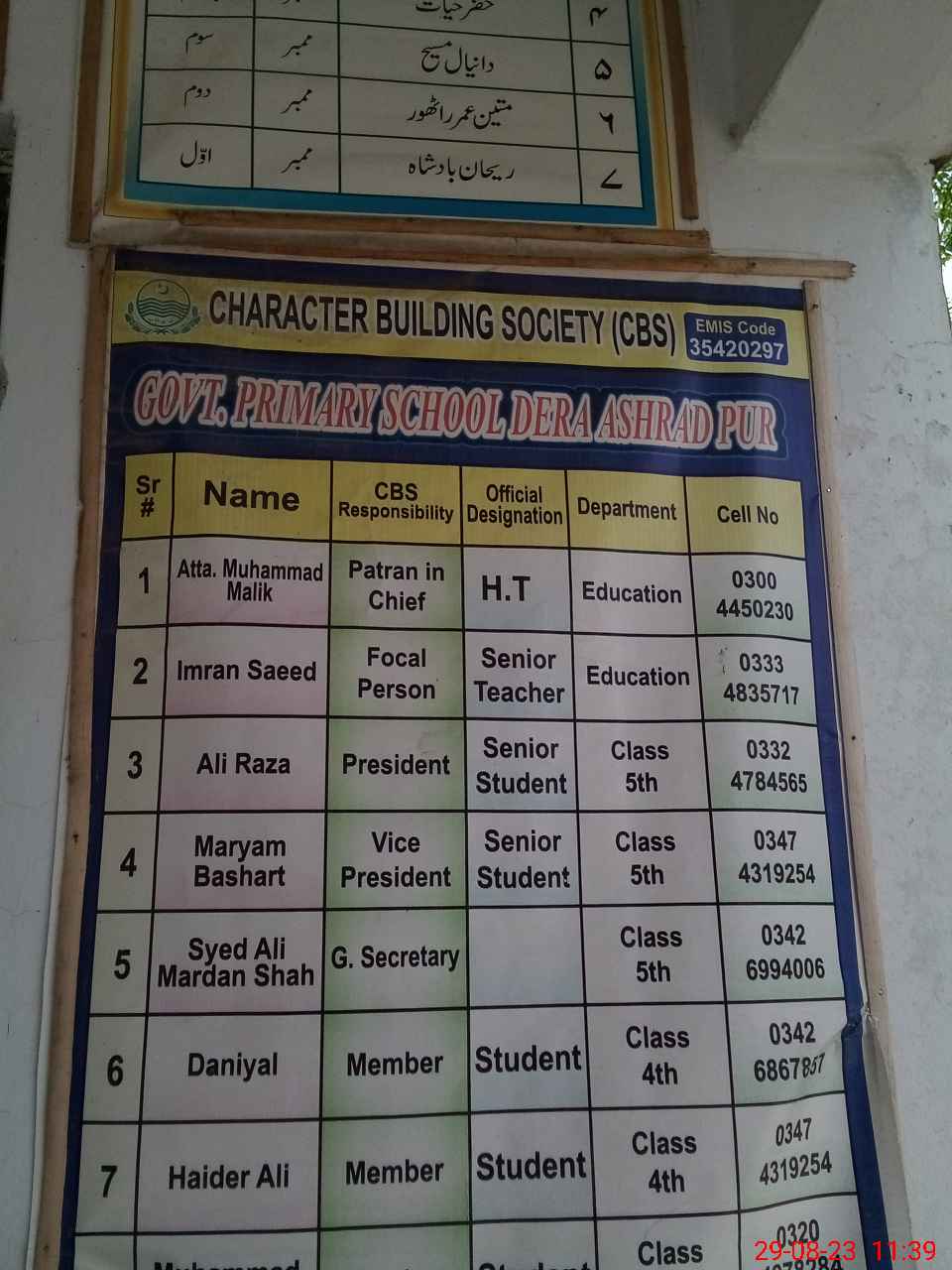 | EMIS Code: 35420297 | Name of School: GPS DERA ASHRAF PUR | |||