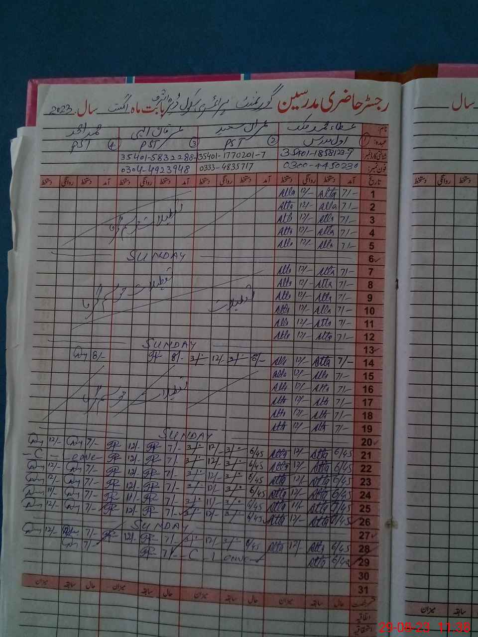 | Name: AT**** MU**** Designation: (School Headmaster's/Headmistress's) Pst Phone/Cell Number: 03**** |