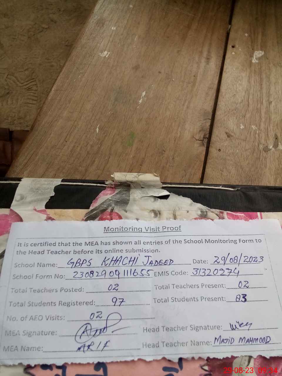 | EMIS Code: 31320214 | Name of School: GPS KHACHI JADEED | |||