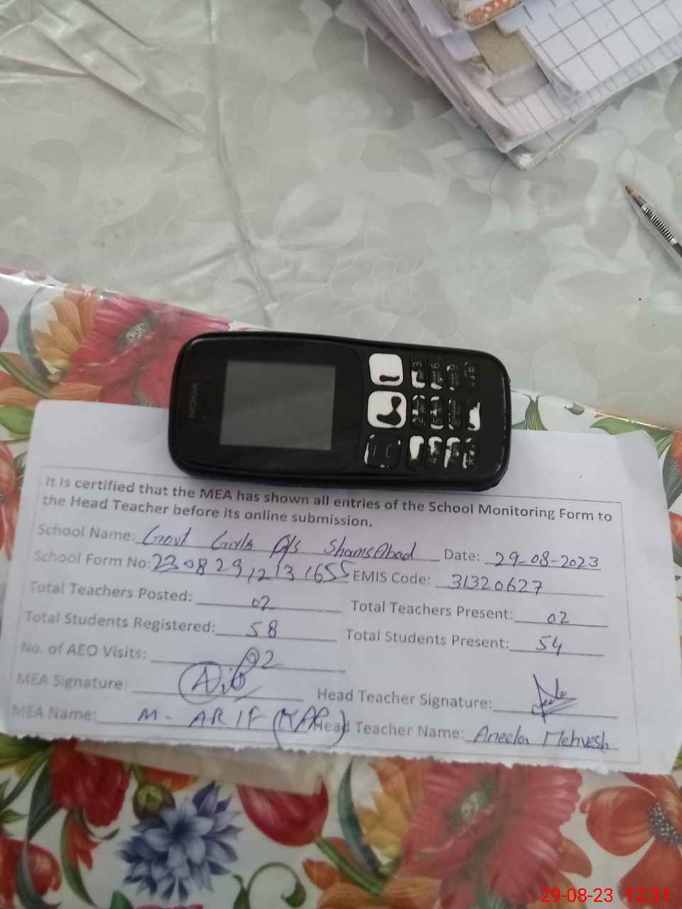 | Attendance Register | Head Teacher | MEA with School | Visit Proof |