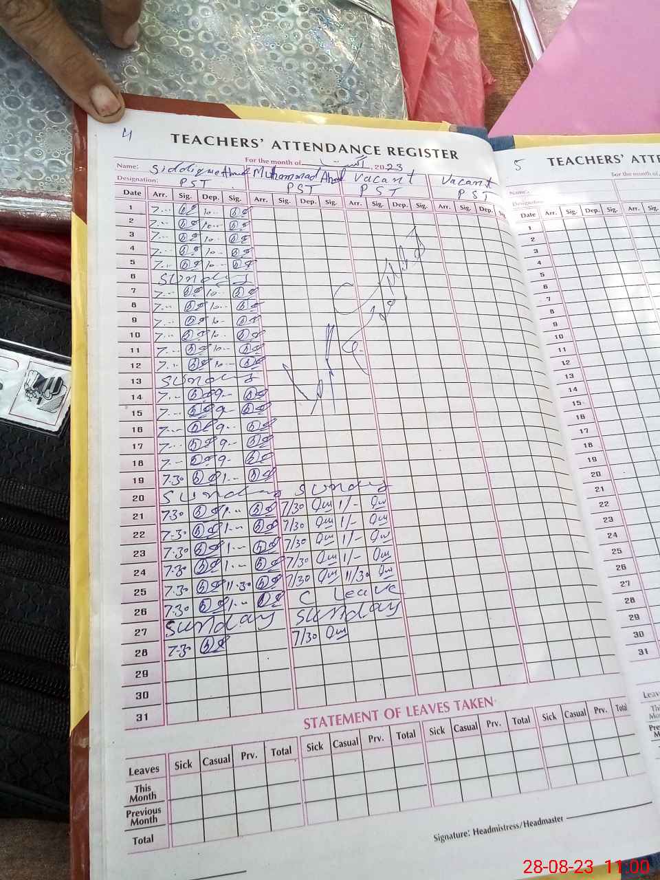 | Name: SI**** AH**** Designation: (School Headmaster's/Headmistress's) PST/PTC/JV Phone/Cell Number: 03**** |