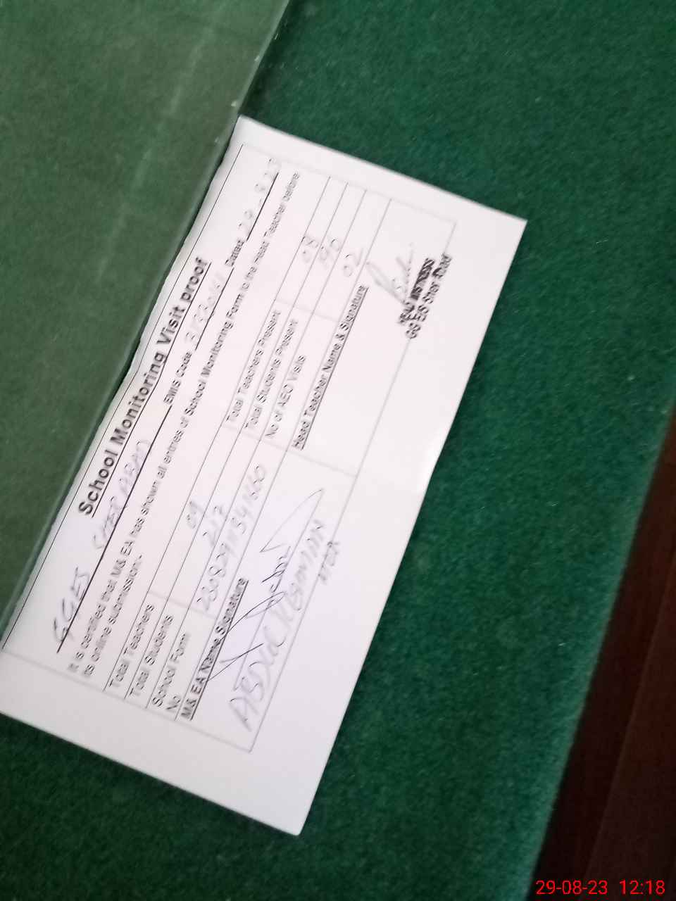 | Attendance Register | Head Teacher | MEA with School | Visit Proof |