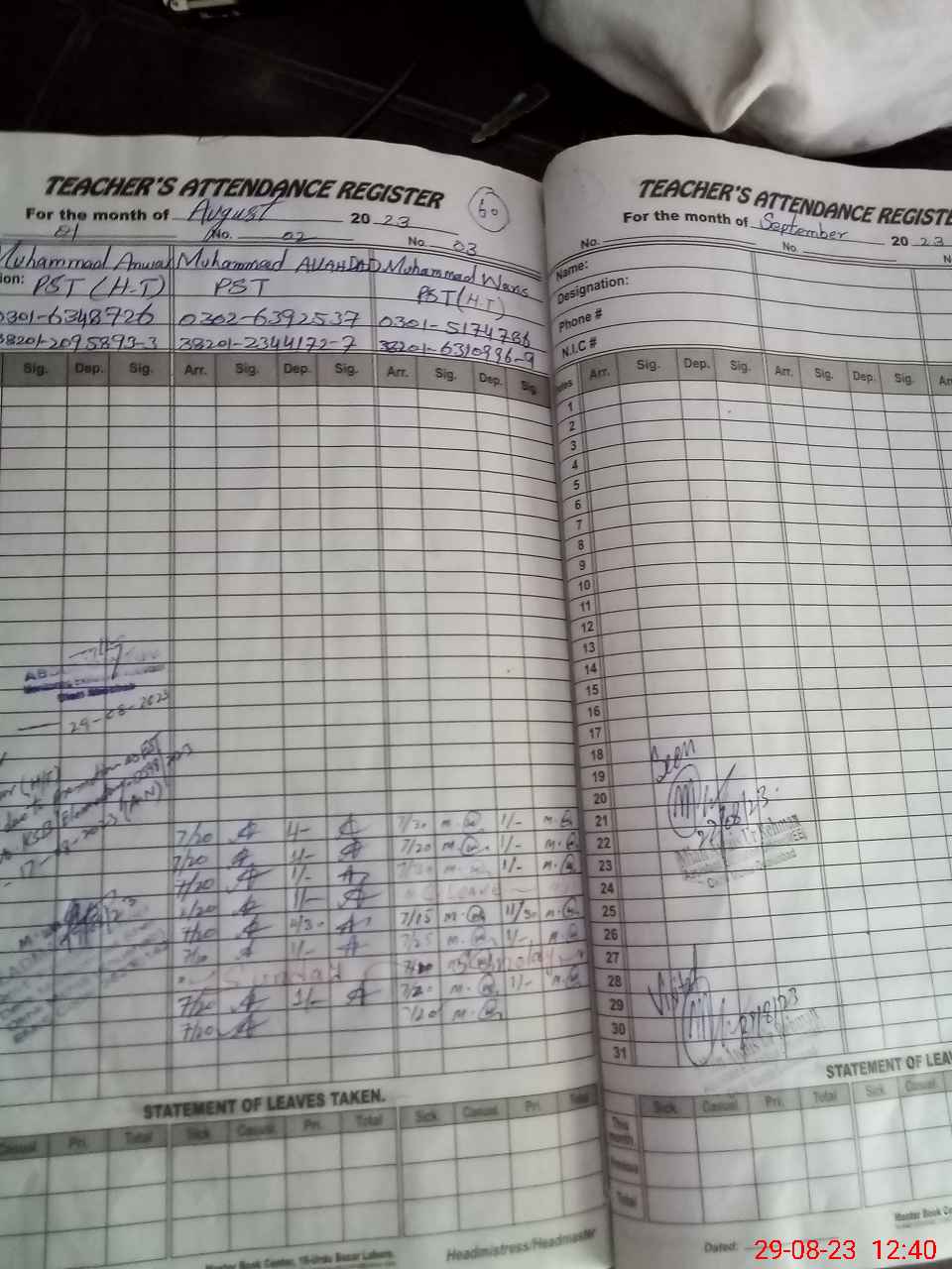 | Name: Mu**** Wa**** Designation: (School Headmaster's/Headmistress's) P S T Phone/Cell Number: 03**** |