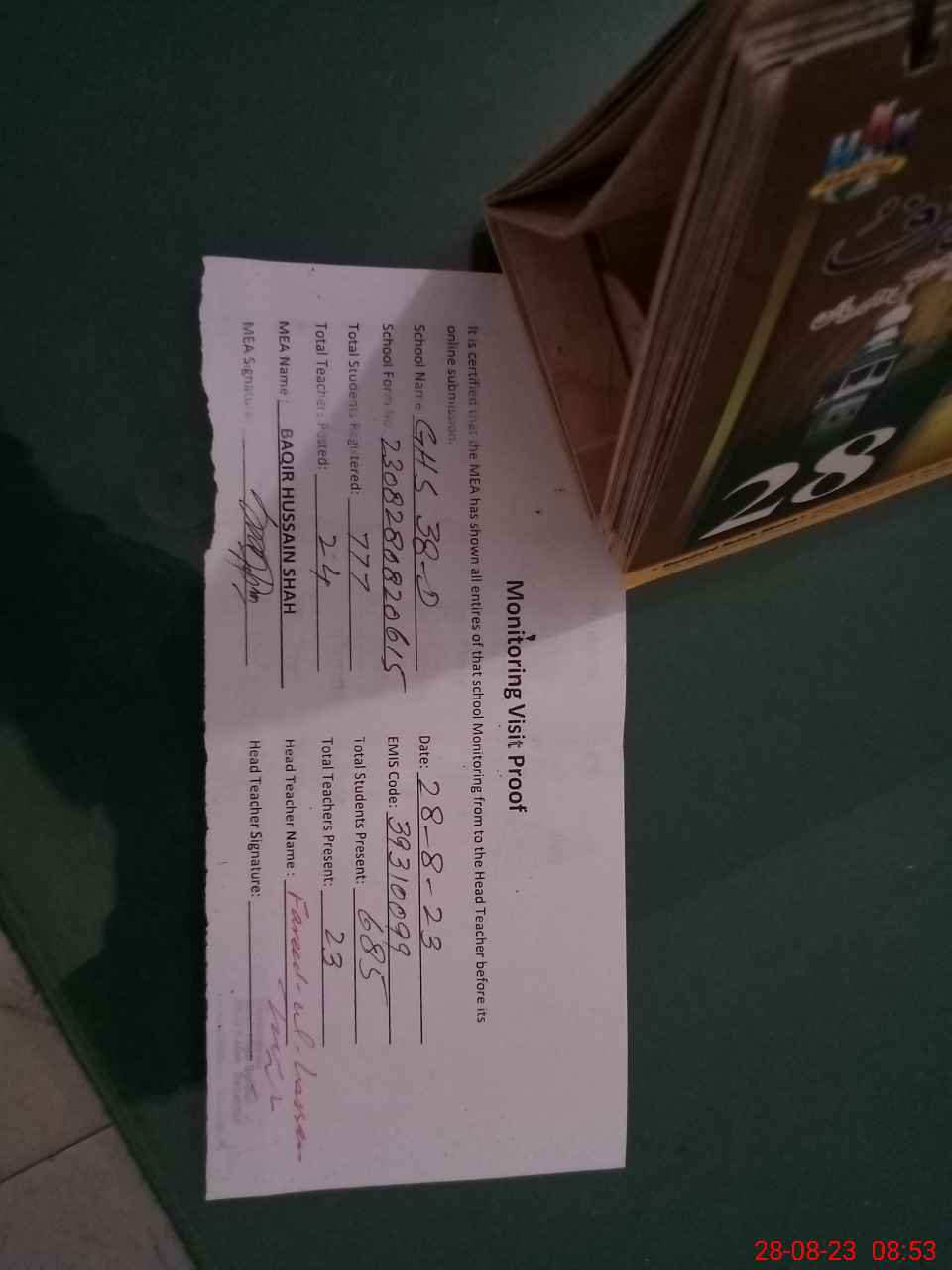 | EMIS Code: 39310099 | Name of School: GHS CHAK 38-D KALAN | |||