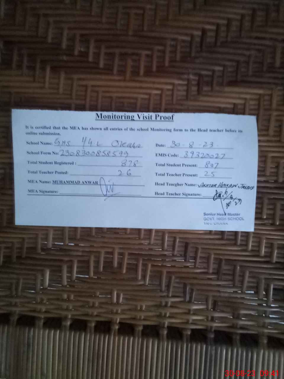 | EMIS Code: 39320027 | Name of School: GHS CHAK NO. 1/4-L | |||