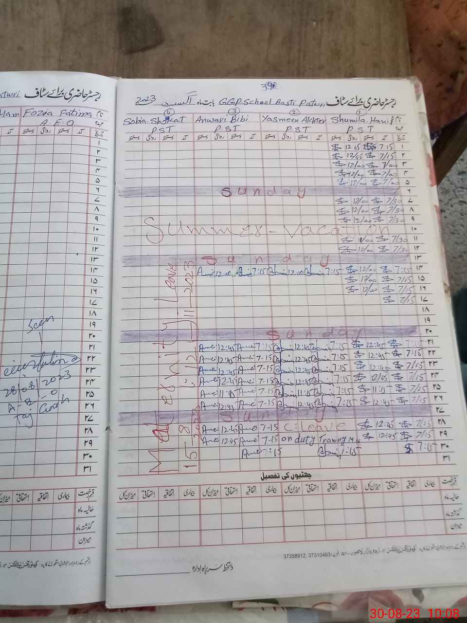 | Name: Sh**** Ha**** Designation: (School Headmaster's/Headmistress's) P S T Phone/Cell Number: 03**** |