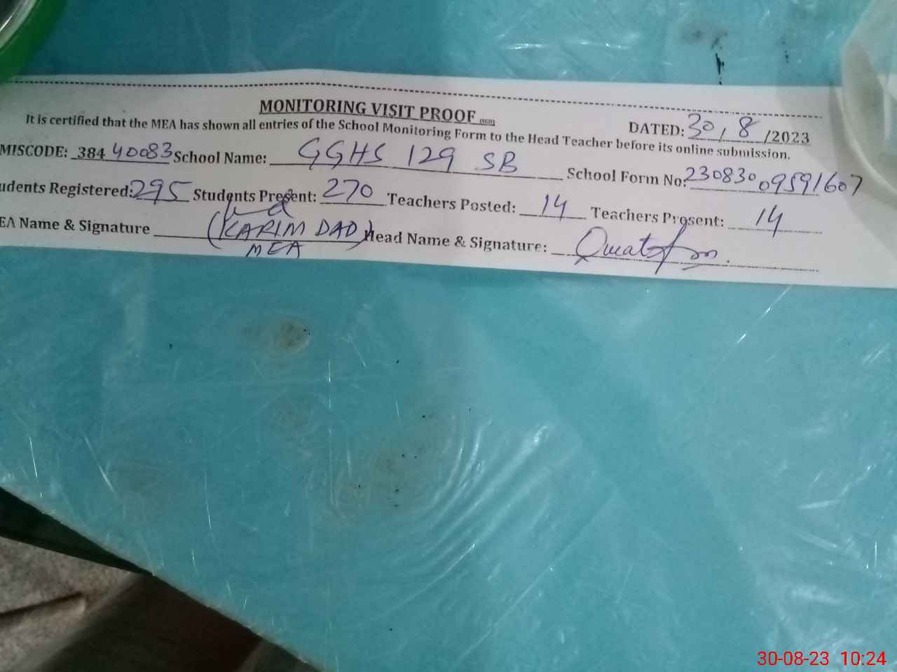 | EMIS Code: 38440083 | Name of School: GGHS CHAK NO 129 SB | |||