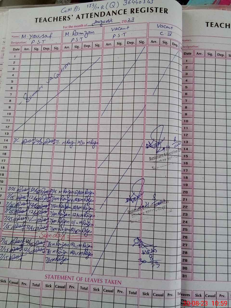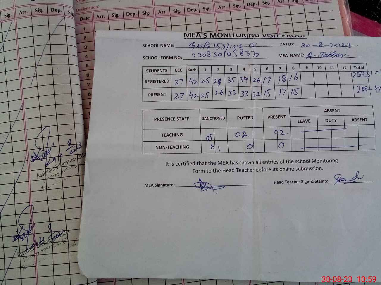 | Attendance Register | Head Teacher | MEA with School | Visit Proof |