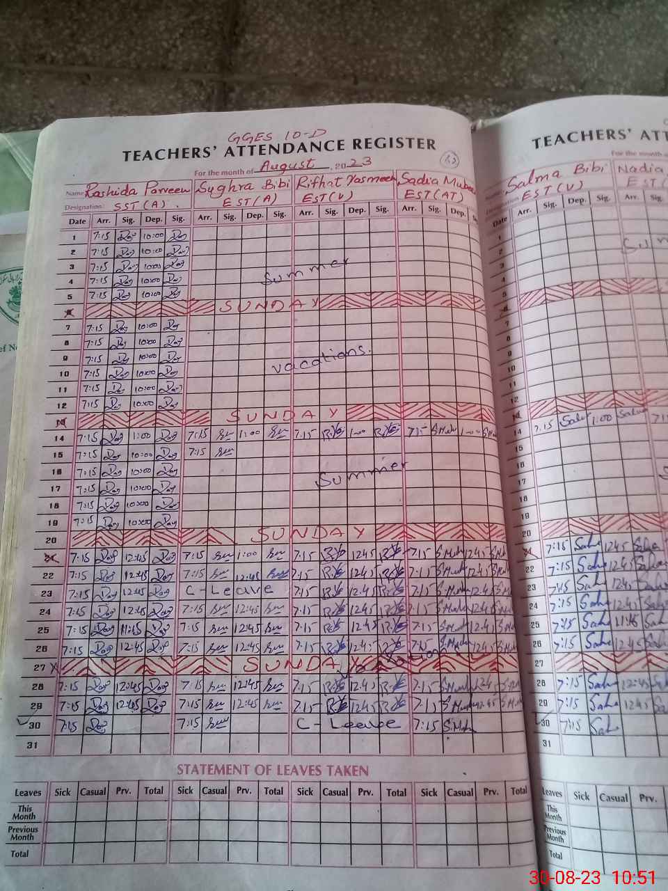 | 36**** | Ri**** Bo**** | PST | Regular | 0 | 0 | 0 | 0 | 0 | 0 | 0 | 0 | 0 | Maternity |