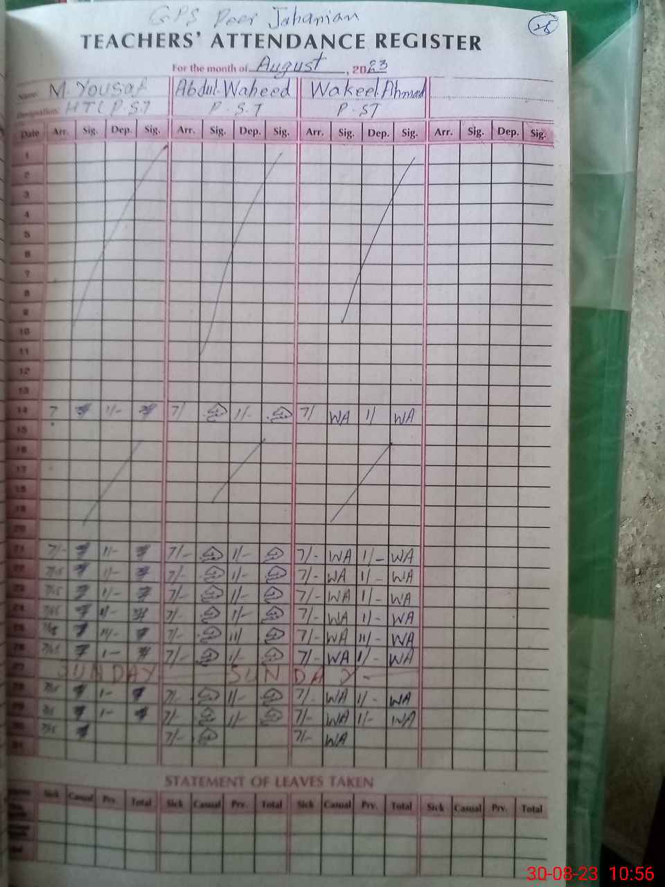| CNIC | Full Name | Designation | R/C | Absence During Last Calender Month |
