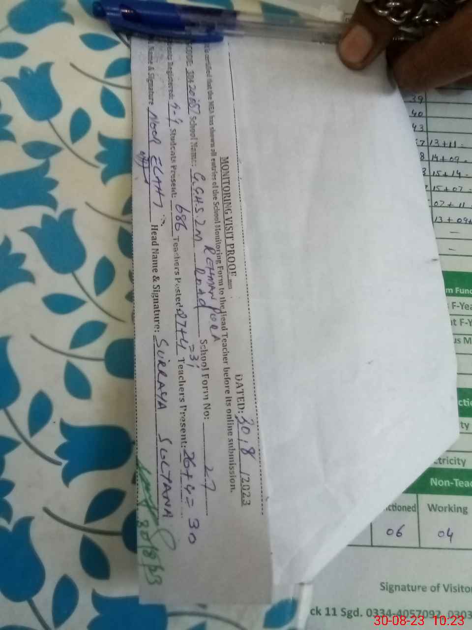 | Name: Sa**** No**** Designation: (School Headmaster's/Headmistress's) PRINCIPAL Phone/Cell Number: 03**** |