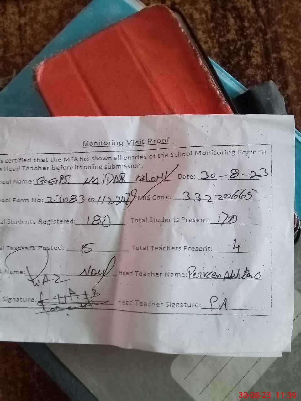 | EMIS Code: 33220665 | Name of School: GGPS HAIDAR COLONY | |||