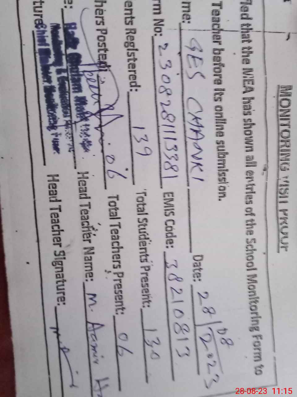 | Name: Mu**** Aa**** Ha**** Designation: (School Headmaster's/Headmistress's) SST Phone/Cell Number: 03**** |