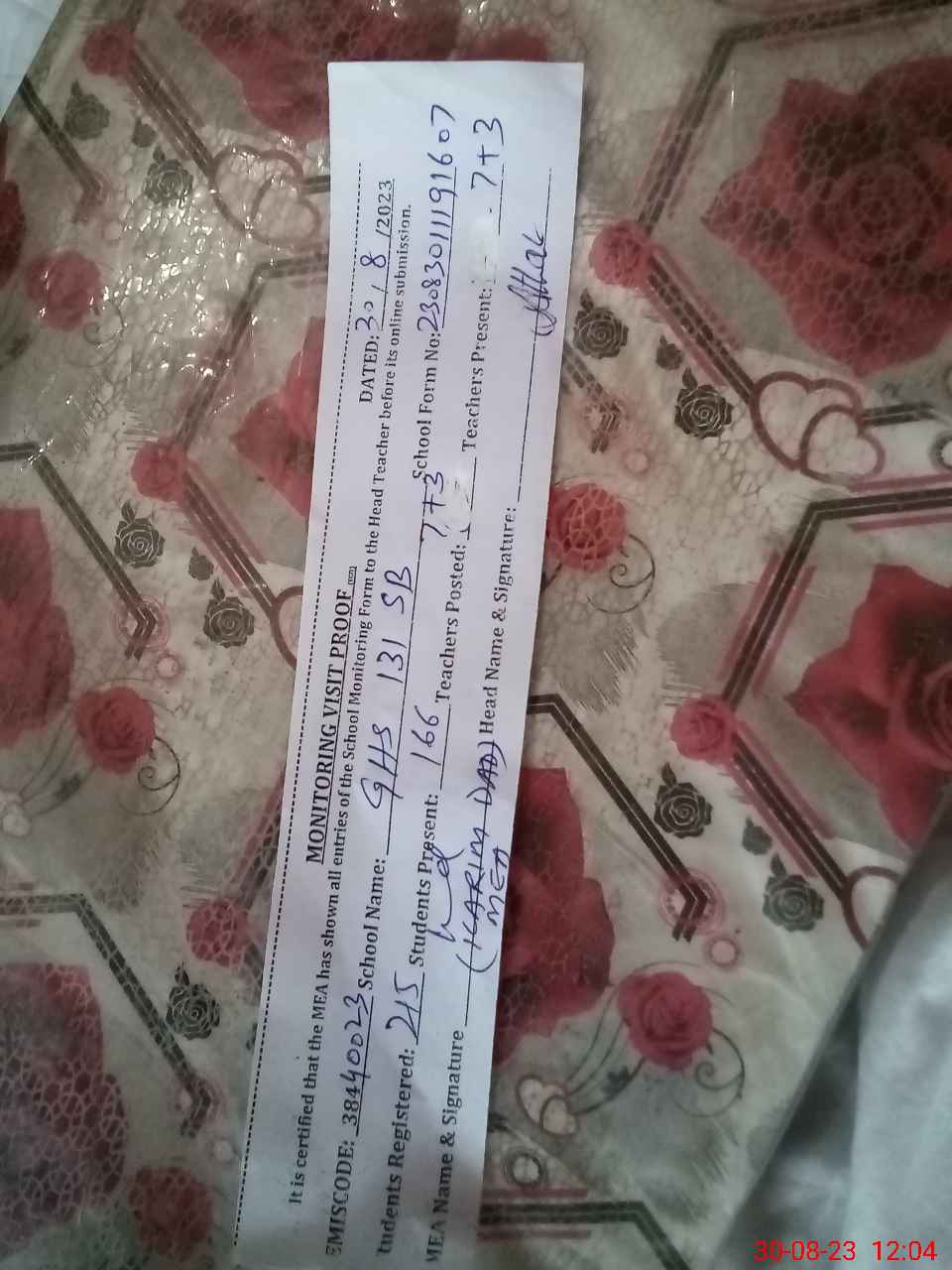 | EMIS Code: 38440023 | Name of School: GHS CHAK NO.131 SB | |||