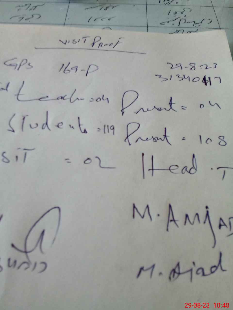 | Attendance Register | Head Teacher | MEA with School | Visit Proof |