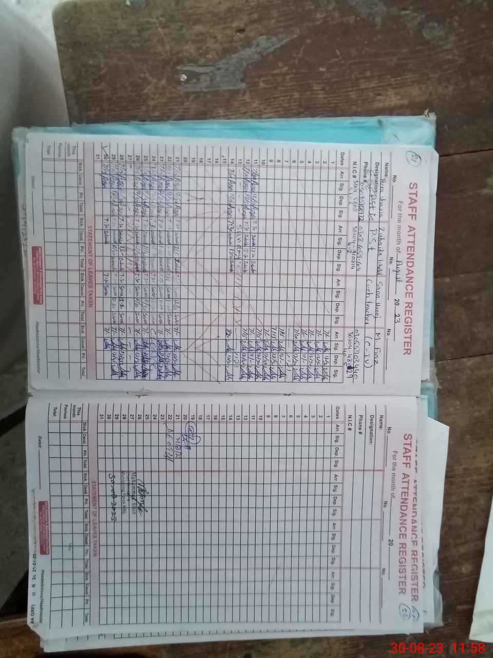 | CNIC | Full Name | Designation | R/C | Absence During Last Calender Month |