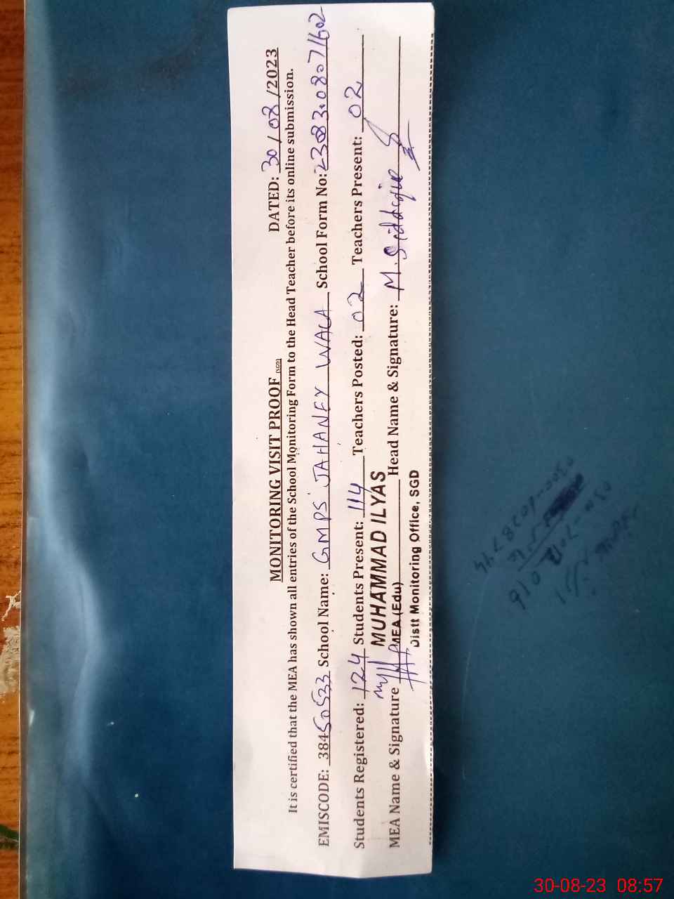 | EMIS Code: 38450533 | Name of School: GMPS JAHANEY WALA | |||
