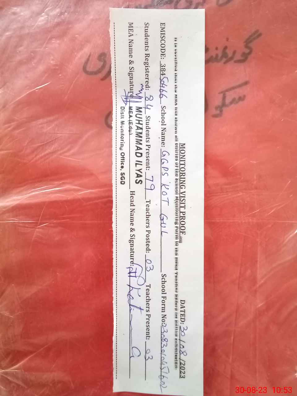| EMIS Code: 38450466 | Name of School: GGPS KOT GUL | |||