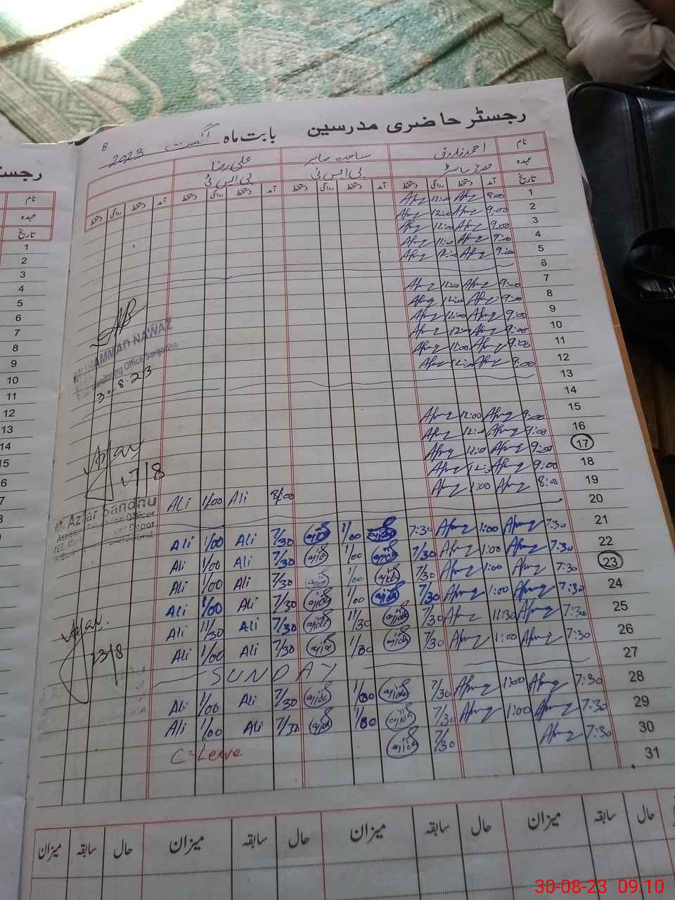 | CNIC | Full Name | Designation | R/C | Absence During Last Calender Month |
