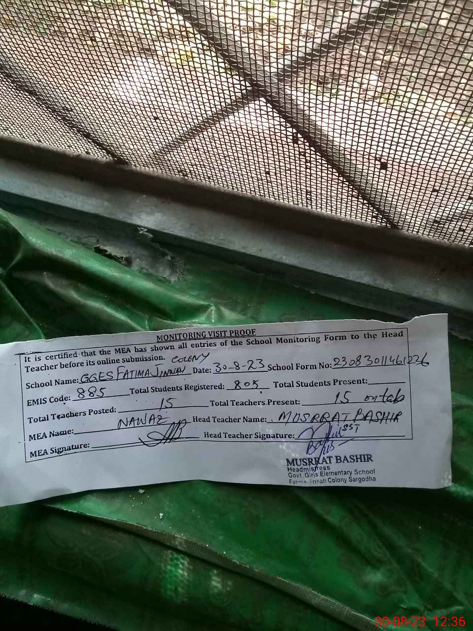 | EMIS Code: 38420721 | Name of School: GGES FATIMA JINNAH COLONY | |||