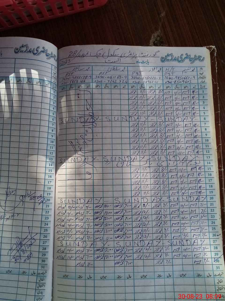 | Name: MU**** NA**** Designation: (School Headmaster's/Headmistress's) PST Phone/Cell Number: 03**** |