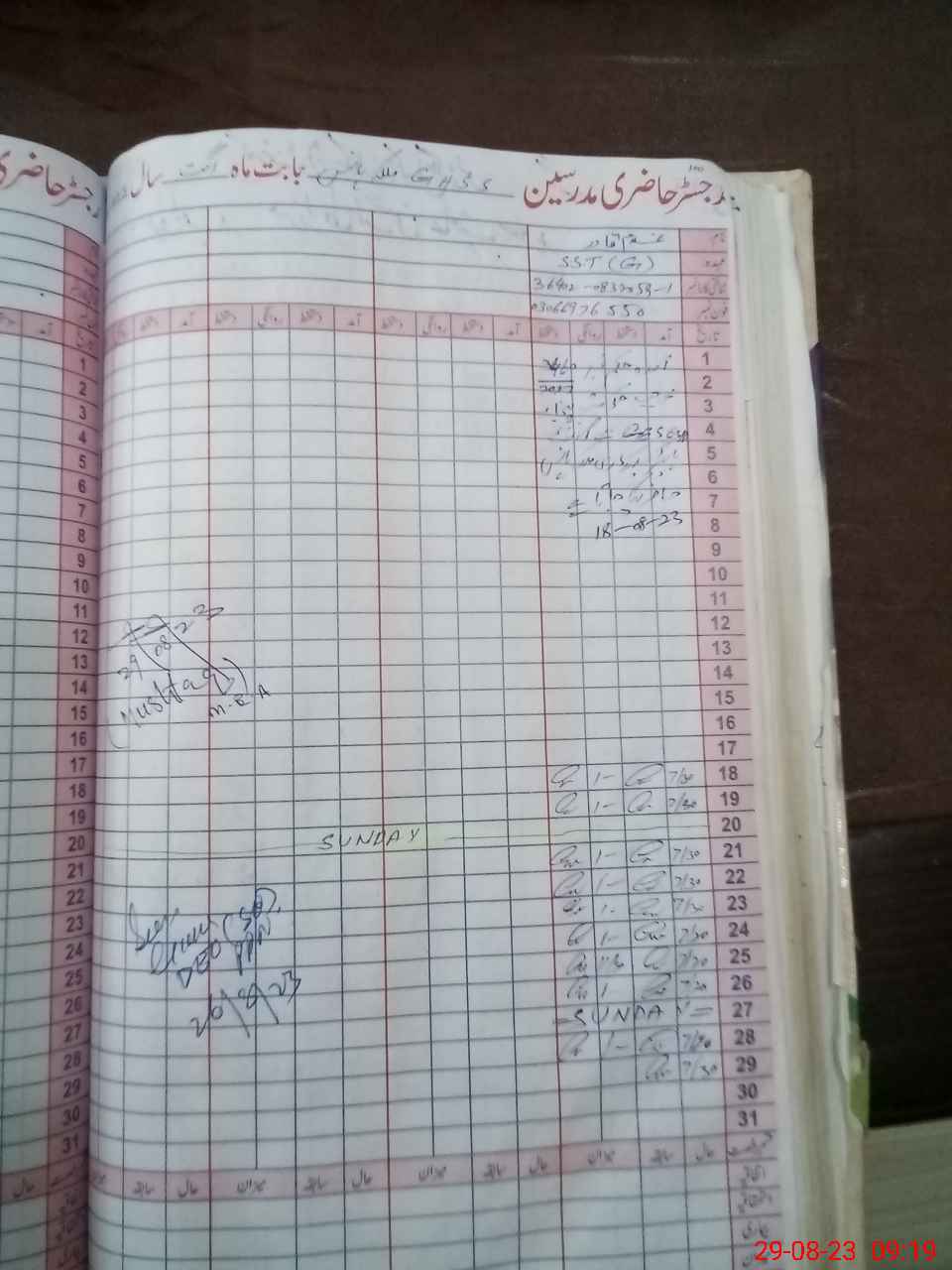 | 36**** | Mu**** Ar**** Iq**** | SSS | Regular | 0 | 0 | 0 | 0 | 0 | 0 | 0 | 0 | 0 | Exam Duty |