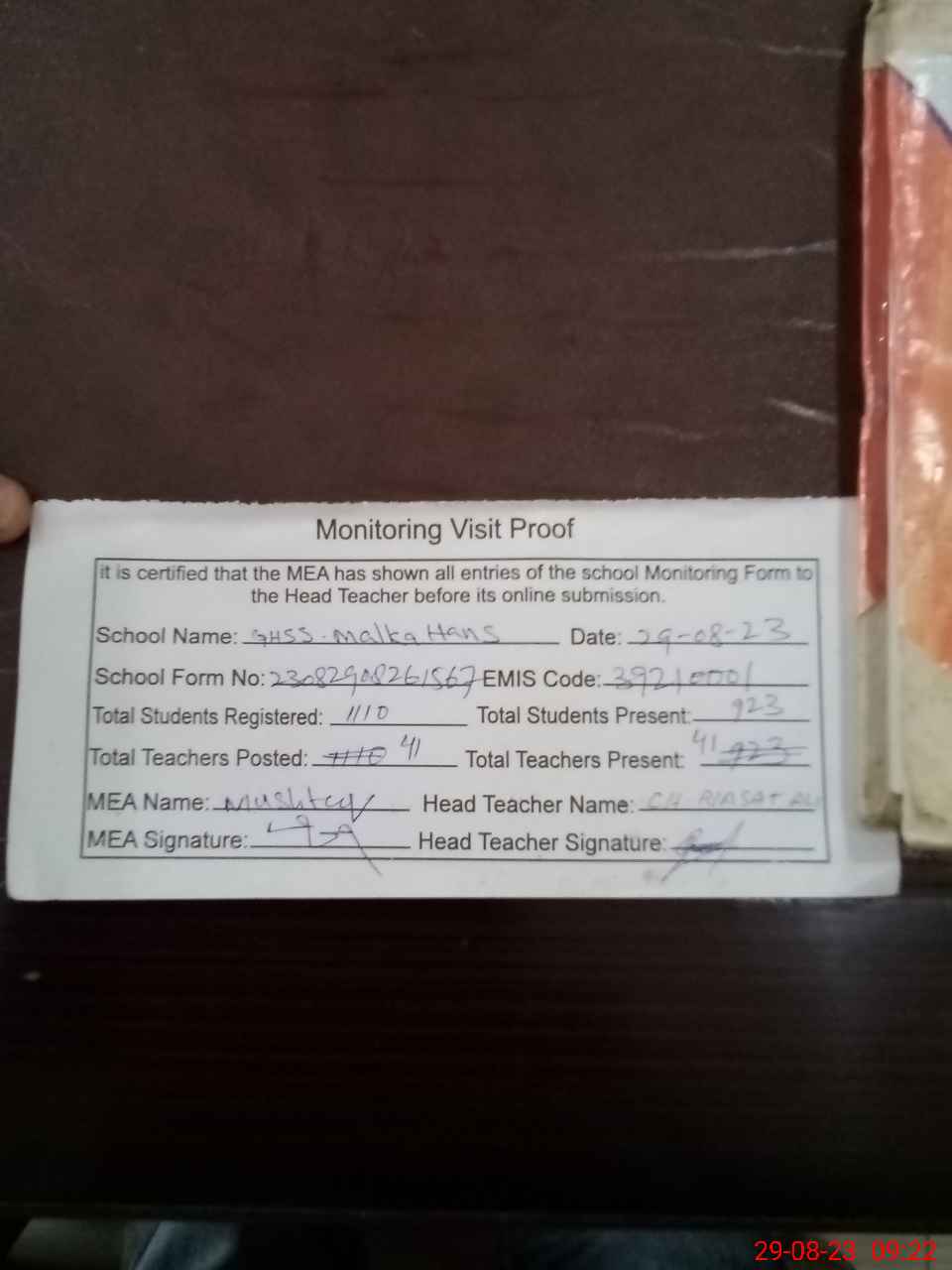 | EMIS Code: 39210001 | Name of School: GHSS MALKA HANS | |||