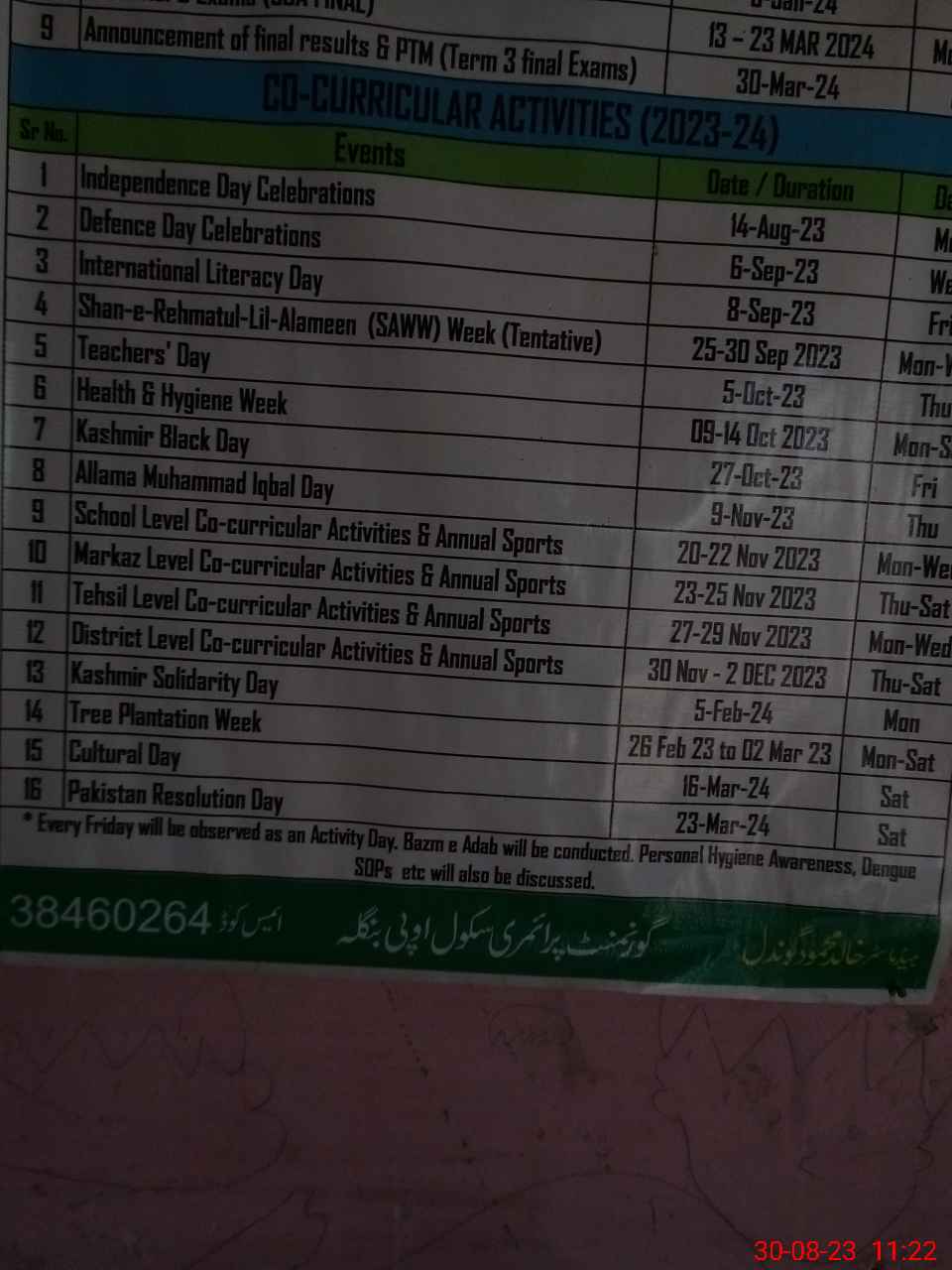 | Name: Ir**** Hu**** Designation: (School Headmaster's/Headmistress's) PST Phone/Cell Number: 03**** |