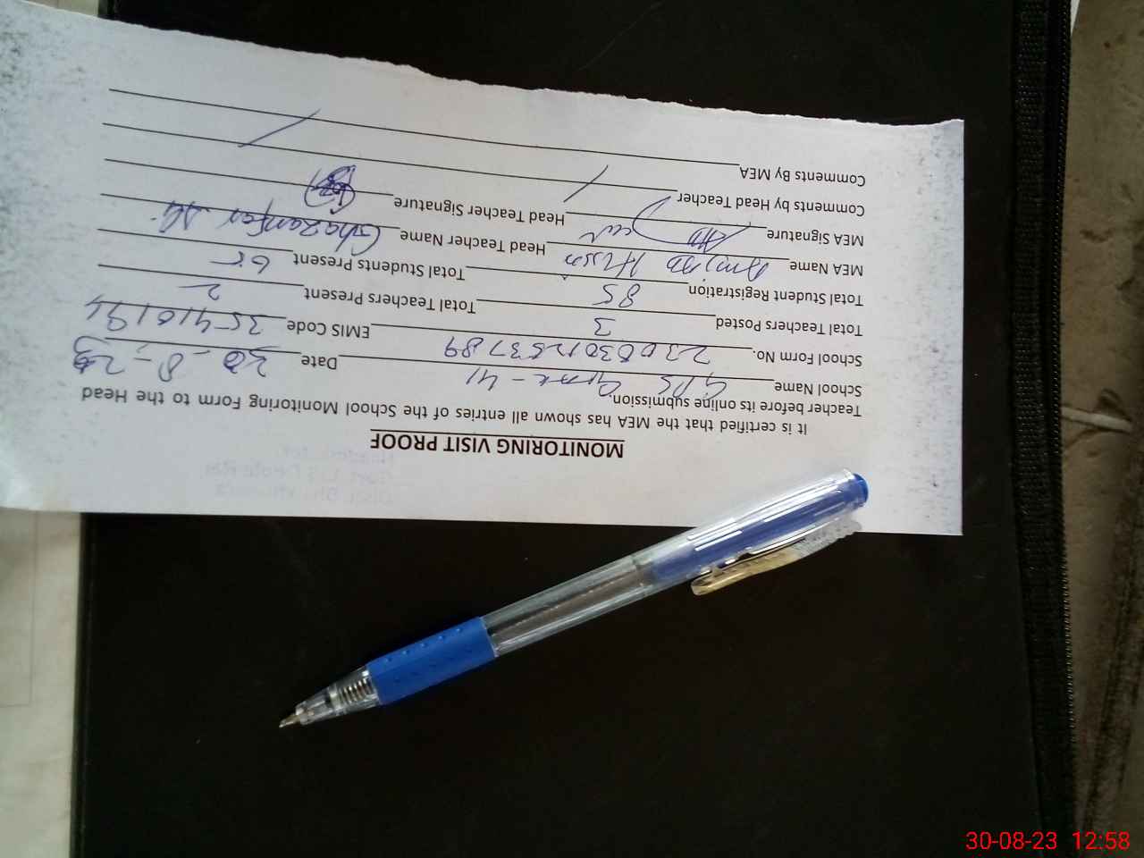 | Attendance Register | Head Teacher | MEA with School | Visit Proof |