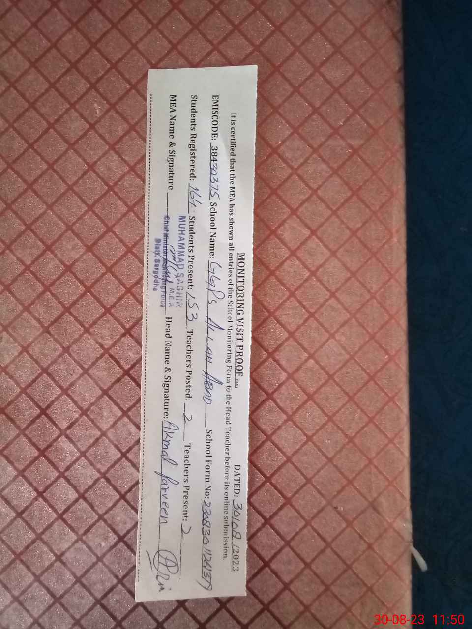 | EMIS Code: 38430375 | Name of School: GGPS ALLAH ABAD | |||