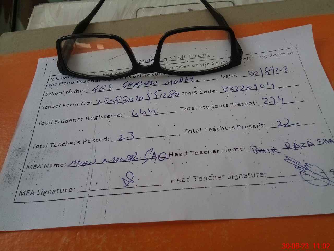 | Attendance Register | Head Teacher | MEA with School | Visit Proof |
