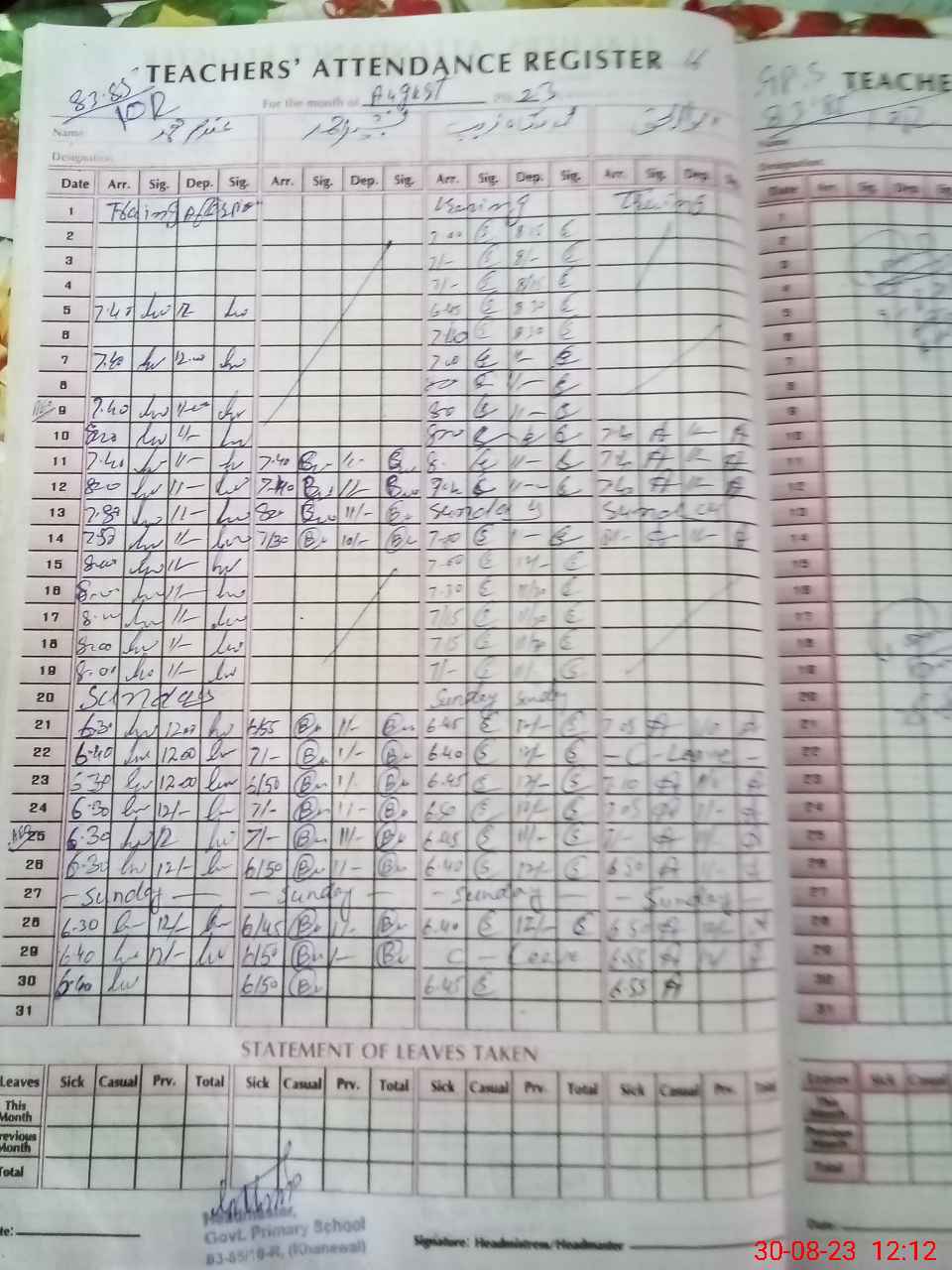 | Name: MSh**** Designation: (School Headmaster's/Headmistress's) PST Phone/Cell Number: 03**** |