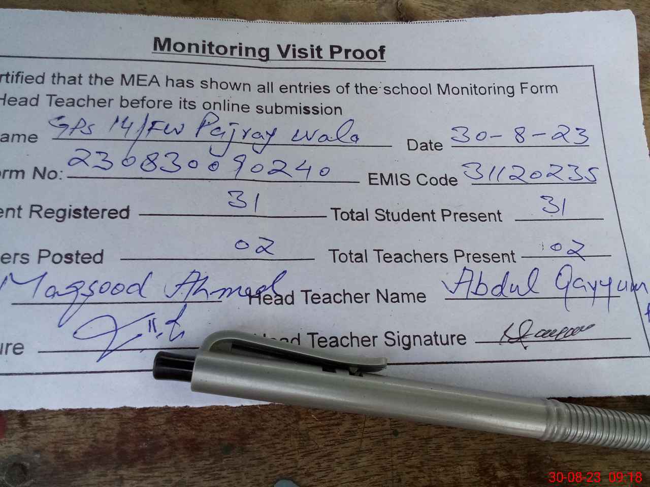 | EMIS Code: 31120235 | Name of School: GPS CHAK NO.14/FW PAJRAY WALA | |||