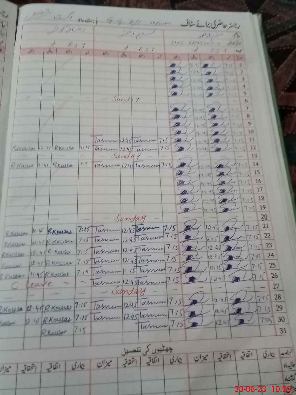 | CNIC | Full Name | Designation | R/C | Absence During Last Calender Month |