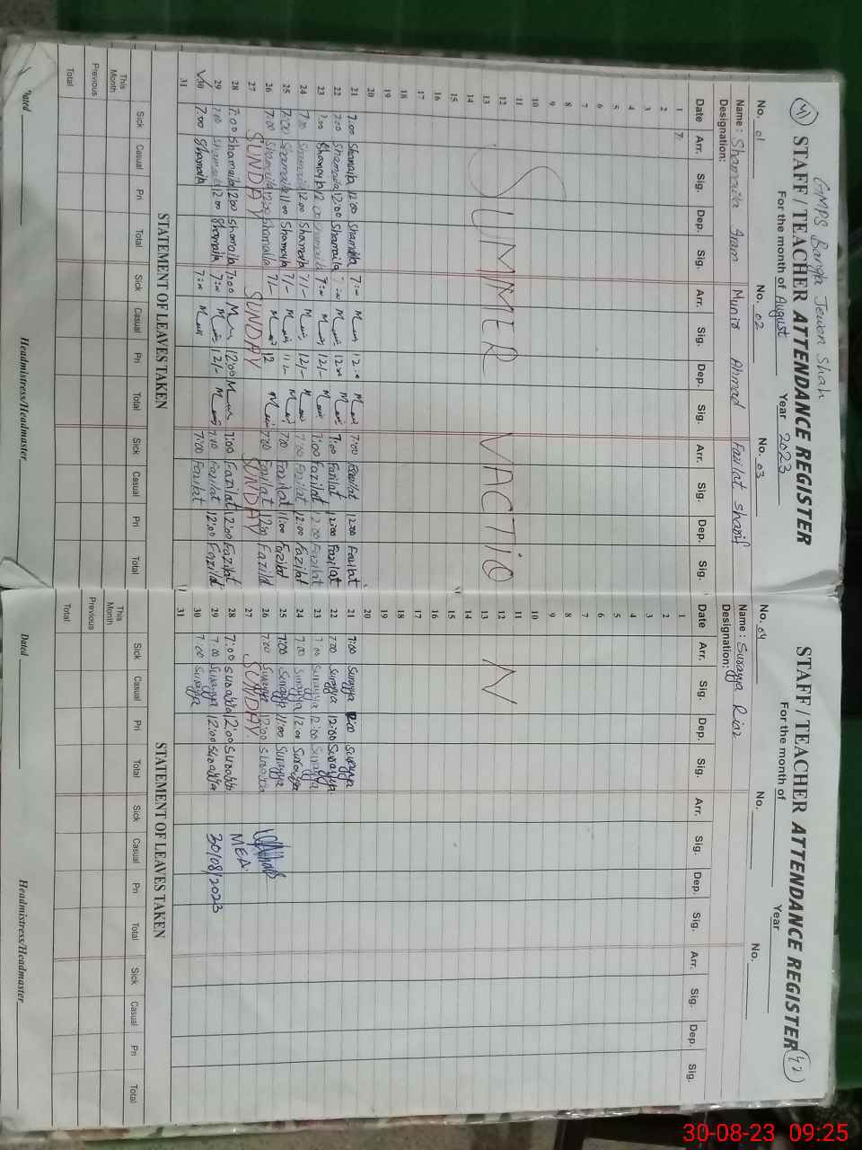 | Name: SH**** IR**** Designation: (School Headmaster's/Headmistress's) PST Phone/Cell Number: 03**** |