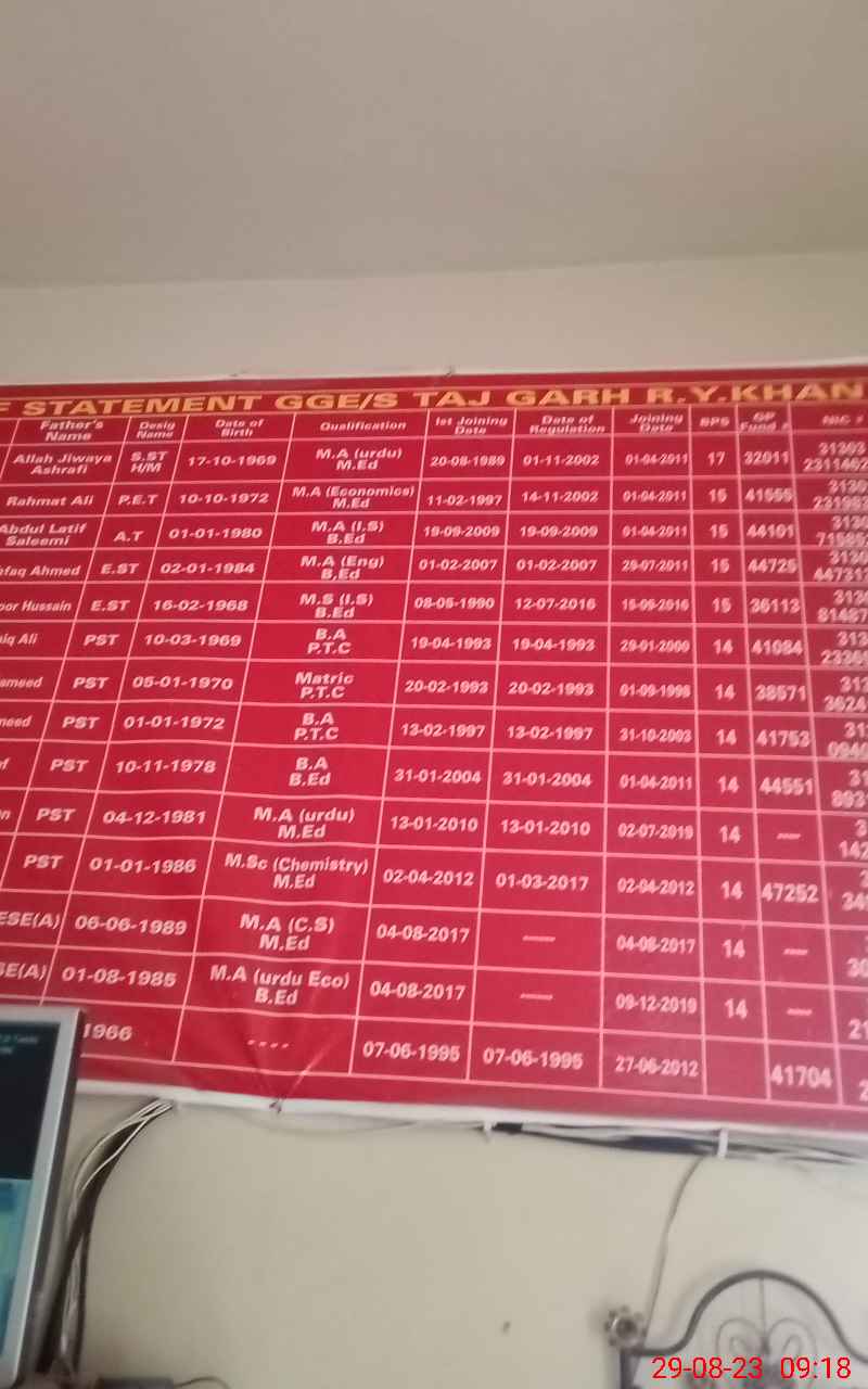 | EMIS Code: 31330828 | Name of School: GGES TAJ GARH | |||