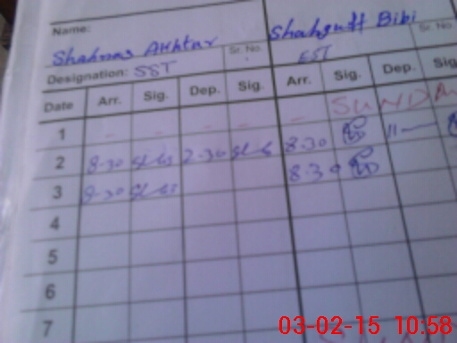 | Monitoring Date: 03-02-2015 | Start Time: 03-02-2015 10:31 AM | End Time: 03-02-2015 11:00 AM | Name of MEA: Z.**** M.Is**** | |