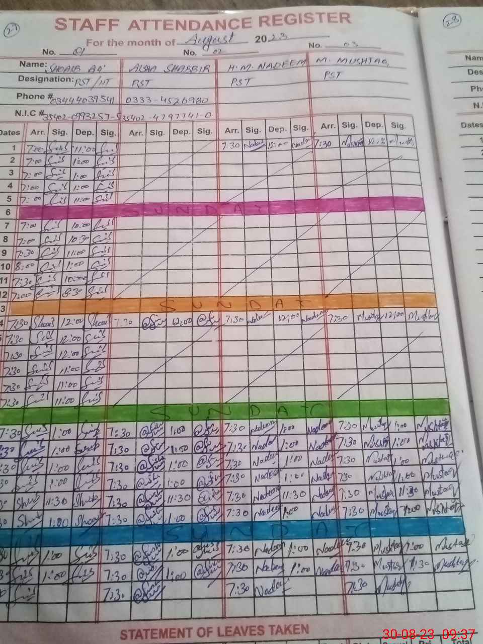 | Name: SH**** AL**** Designation: (School Headmaster's/Headmistress's) PST Phone/Cell Number: 03**** |