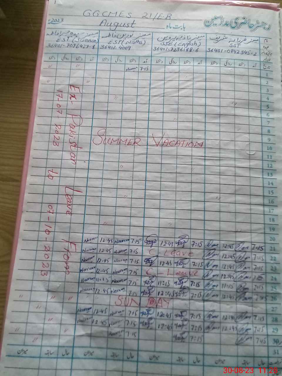 | Name: FA**** SH**** Designation: (School Headmaster's/Headmistress's) SST (GENERAL) Phone/Cell Number: 03**** |