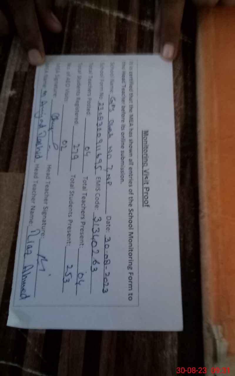 | EMIS Code: 31340263 | Name of School: GPS CHAK NO 7/NP | |||