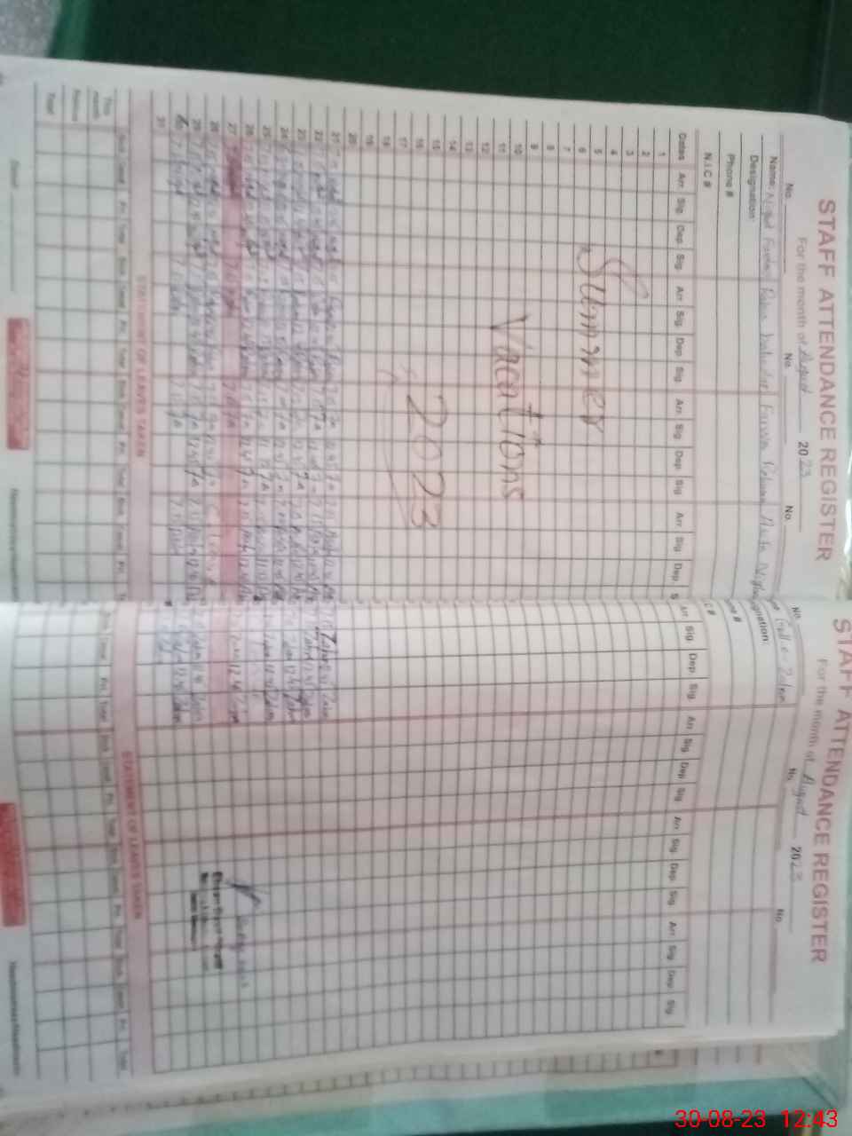 | CNIC | Full Name | Designation | R/C | Absence During Last Calender Month |