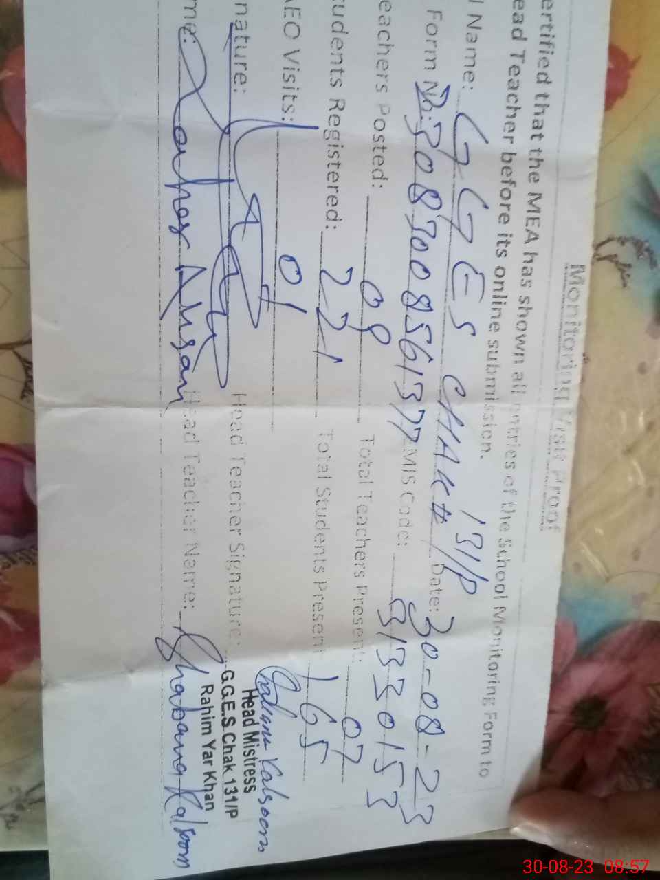 | EMIS Code: 31330153 | Name of School: GGES CHAK NO. 131/P | |||