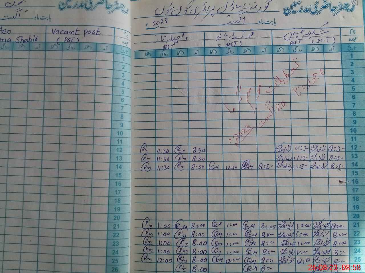 | Name: Sh**** Fa**** Designation: (School Headmaster's/Headmistress's) PTC/JV Phone/Cell Number: 03**** |
