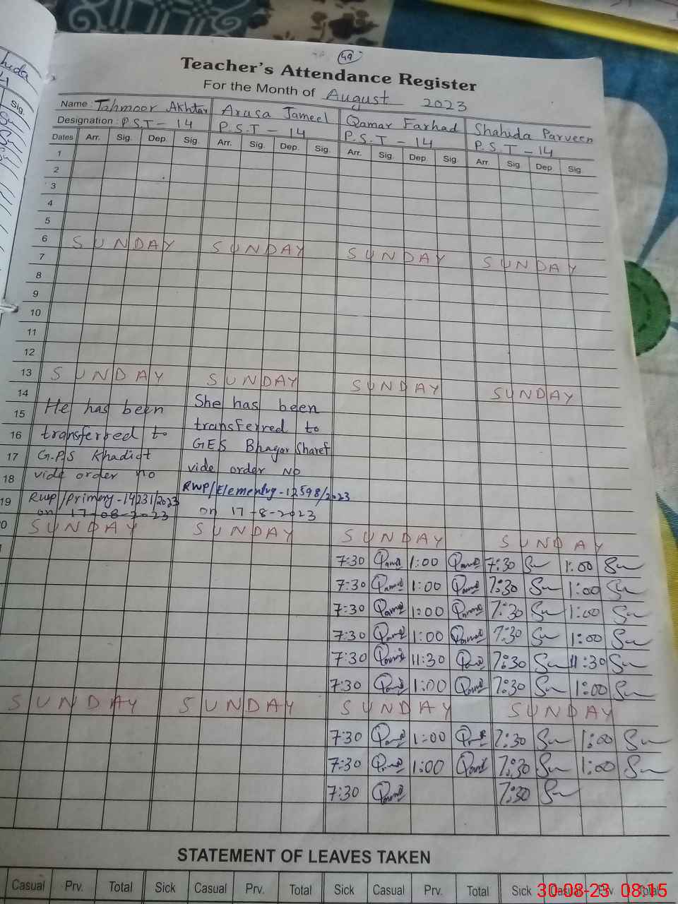 | Name: Qa**** Fa**** Designation: (School Headmaster's/Headmistress's) PST Phone/Cell Number: 03**** |